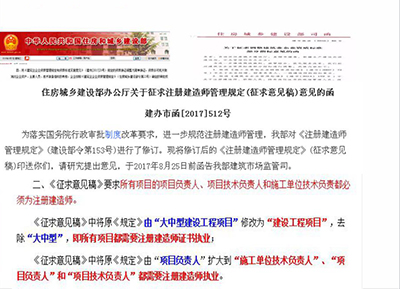 政策文件:《2017年153號文——建造師管理人員征求意見稿》